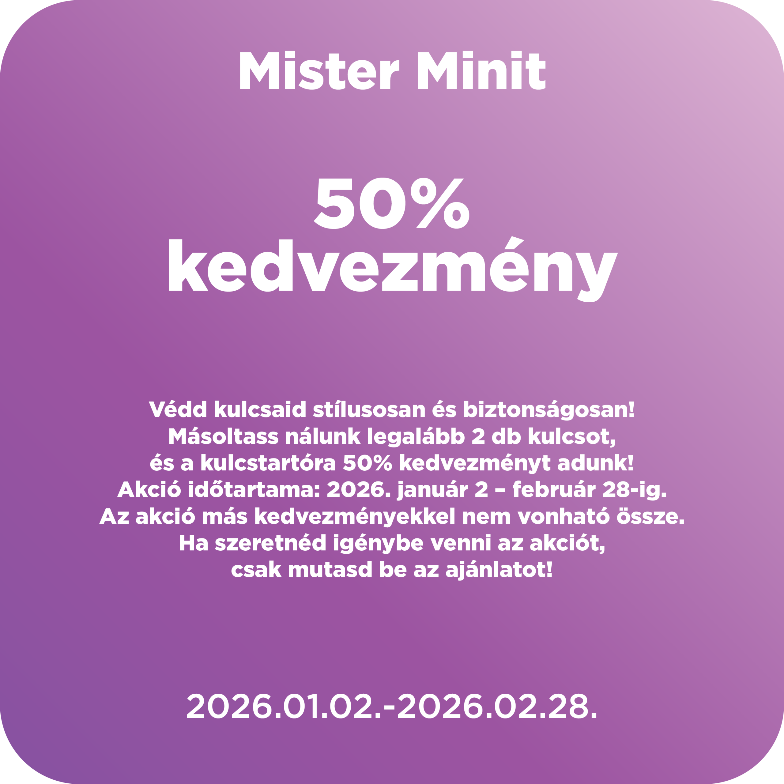 Az akcióban résztvevő üzletek ajánlatairól, érvényességéről és a kedvezmények feltételeiről érdeklődj üzletekben.